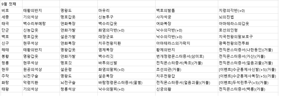 2022년 9월 첫째주 전서버 경매목록
