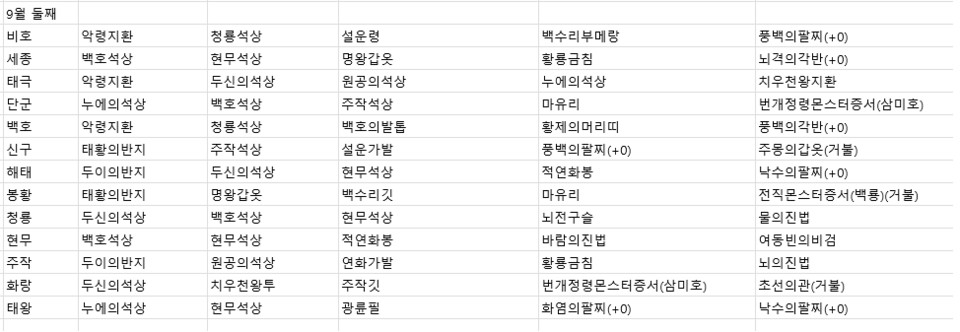 2022년 9월 둘째주 전서버 경매목록